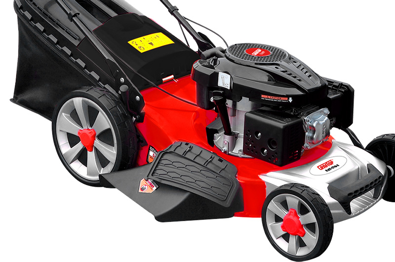 2. 21″” (520mm) mowing width, 8-position adjustment, 15-75mm mowing height adjustment, 65L hard-top grass collection volume